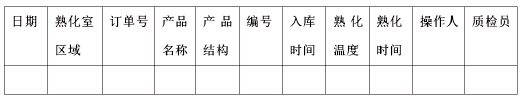 2、熟化室進出庫要做好詳細的熟化室記錄表,以便于隨時掌握熟化產品的產品動態與生產進度,如表2。