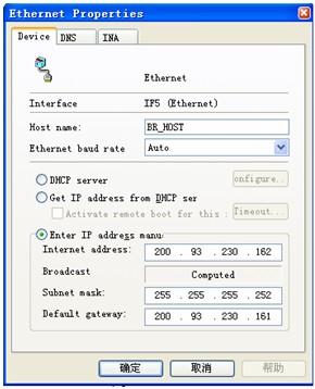 在貝加萊控制系統(tǒng)中,首先我們要對貝加萊 PLC的硬件進行組態(tài)。組態(tài)完成后,我們需做如下配置,打開貝加萊控制系統(tǒng)的Ethernet 接口的屬性,如圖(2),將3G路由器的公網(wǎng)地址、子網(wǎng)掩碼、網(wǎng)關(guān)等依次寫入到Ethernet Properties中,然后打開DNS服務(wù),在程序中啟用DNS服務(wù)功能,將3G路由器的DNS服務(wù)器添加進去,最后在INA服務(wù)中寫入路由器的服務(wù)端口號。通過以上設(shè)定,我們就完成了貝加萊控制系統(tǒng)的以太網(wǎng)口設(shè)定。